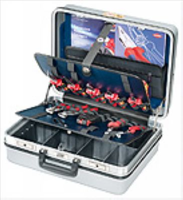 采用耐磨ABS硬壳结构,用铝架和围衬加固;设有专用文件袋和笔插;工具固定薄板可拆卸,在两侧有弹力松紧带;另有1个不可拆卸的工具固定薄板,并附有弹力松紧带和工具保护衬布;配备坚固安全的金属锁和3个数码锁;在两侧设有立脚;颜色:银色/铝质外观;箱内尺寸:420×320×85mm