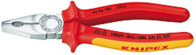 长剪切刀口适于剪切较粗缆线;钳口适于夹持扁平和原形材料;剪切刀口适合剪切软线和硬线;剪切刀口附加感应淬火,剪切刀口硬度约为洛氏硬度HRC60;长度180,头部镀铬,双色双重材料绝缘手柄;剪切能力直径3.4mm面积16mm