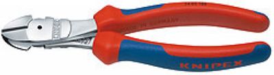 采用锻制的轴,用于重型剪切;适用剪切各种类型的线,包括钢琴丝; 长的斜口钳适用于剪切16mm2以下的铜线和35mm2以下的铝线;省力21%,长度180,头部镀铬,双色双重材料手柄