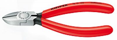 采用精密剪切刀口,适合剪切软线硬线,还适于剪切较细钢琴丝;重叠绞接;刀口硬度约为洛氏硬度63HRC;长度125,头部镀铬,塑料套柄