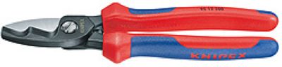 用以剪切铜铝电缆,单股线和多股线;不可用于剪切钢丝和铜质硬拉线;由于采用了适当的高杠杆传输力矩比和新刀片的几何设计,剪切时只需用很小的手力;(上下刀片)初始和最终剪切直径最高达20mm;长度200,头部磨光,双色双重材料手柄